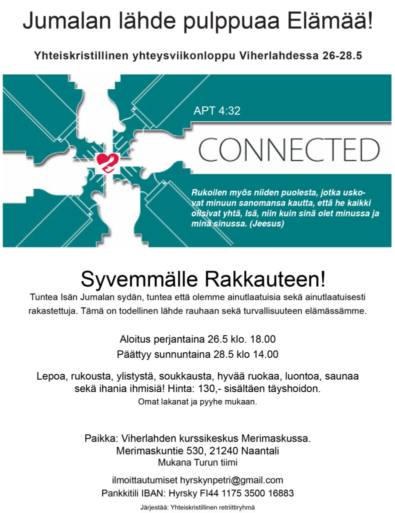 Viikonlopun hinta on 130e sisältäen täysihoidon. Omat lakanat ja pyyhe tarvitaan. Paikkana on Viherlahden leirikeskus Merimaskussa. Leirikeskus sijaitsee osoitteessa Merimaskuntie 530, 21240 Naantali.