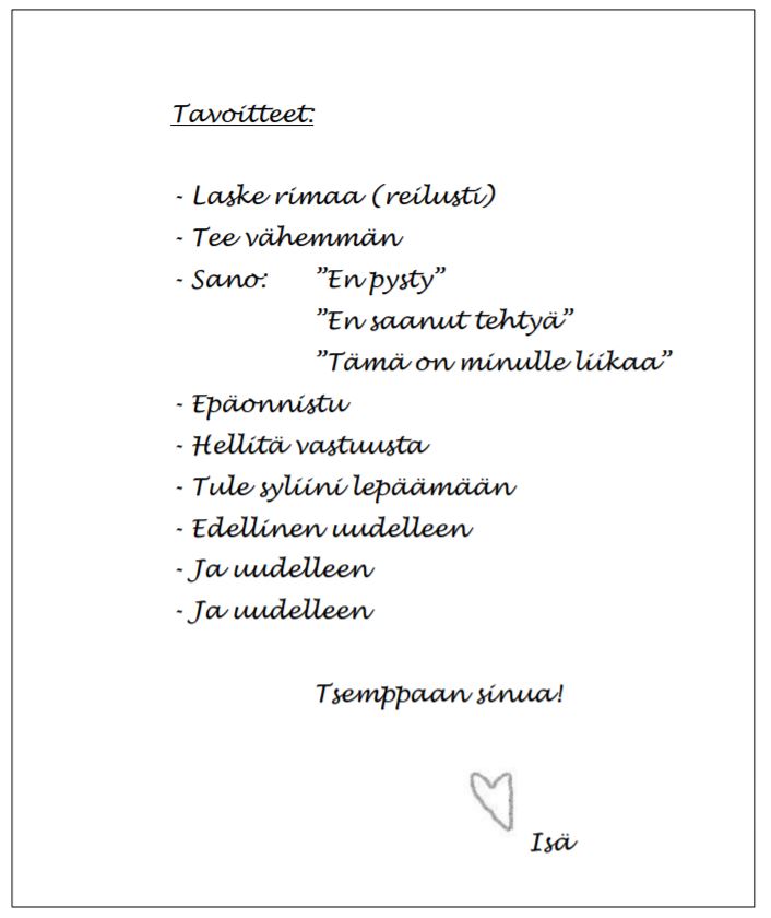 Isä lähti, ja Tiina jäi hämmentyneenä lukemaan paperia.